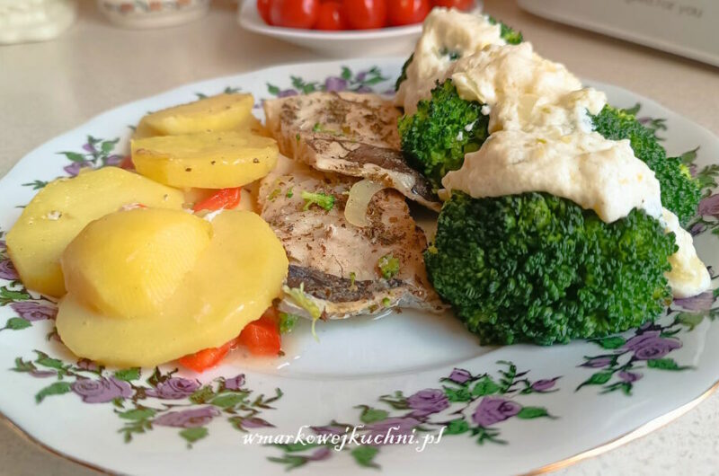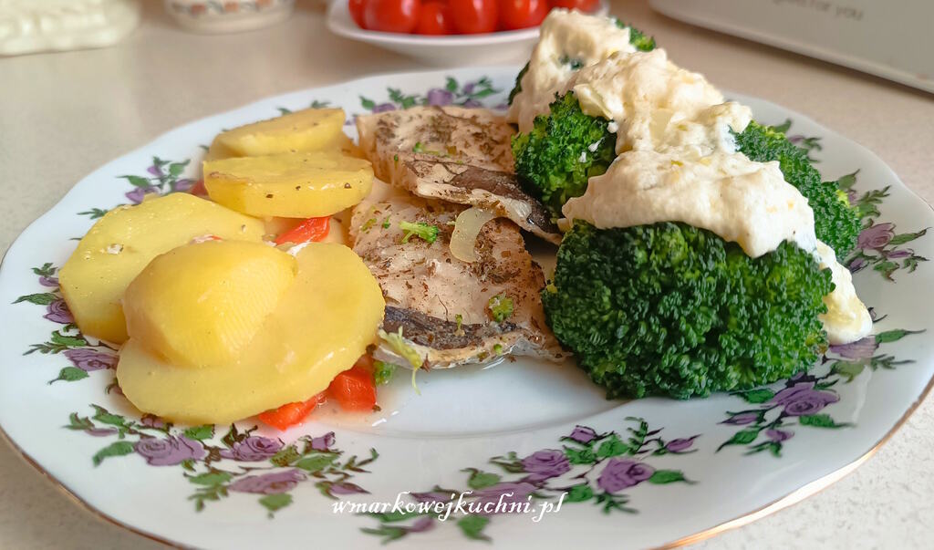 Przepyszna zapiekanka z ziemniakami i filetem z miruny, a wszystko podane z brokułem polanym sosem jogurtowym, to moja propozycja na wielkopiątkowy obiad.