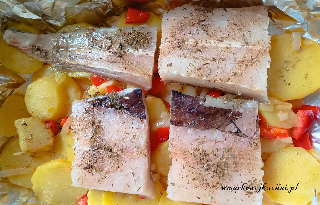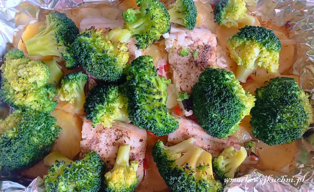 • Wierzch naczynia przykryj i wstaw do nagrzanego piekarnika. Piecz do momentu, gdy ryba i warzywa będą upieczone, u mnie zajęło to około 45 minut.Gotowa zapiekanka